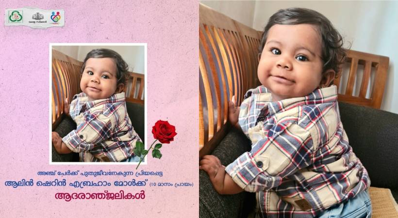 സംസ്ഥാനത്തെ ഏറ്റവും പ്രായം കുറഞ്ഞ അവയവദാതാവായി 10 മാസമുള്ള ആലിൻ ഷെറിൻ എബ്രഹാം : ഇനി അഞ്ച് പേരിലൂടെ ജീവിക്കും ...