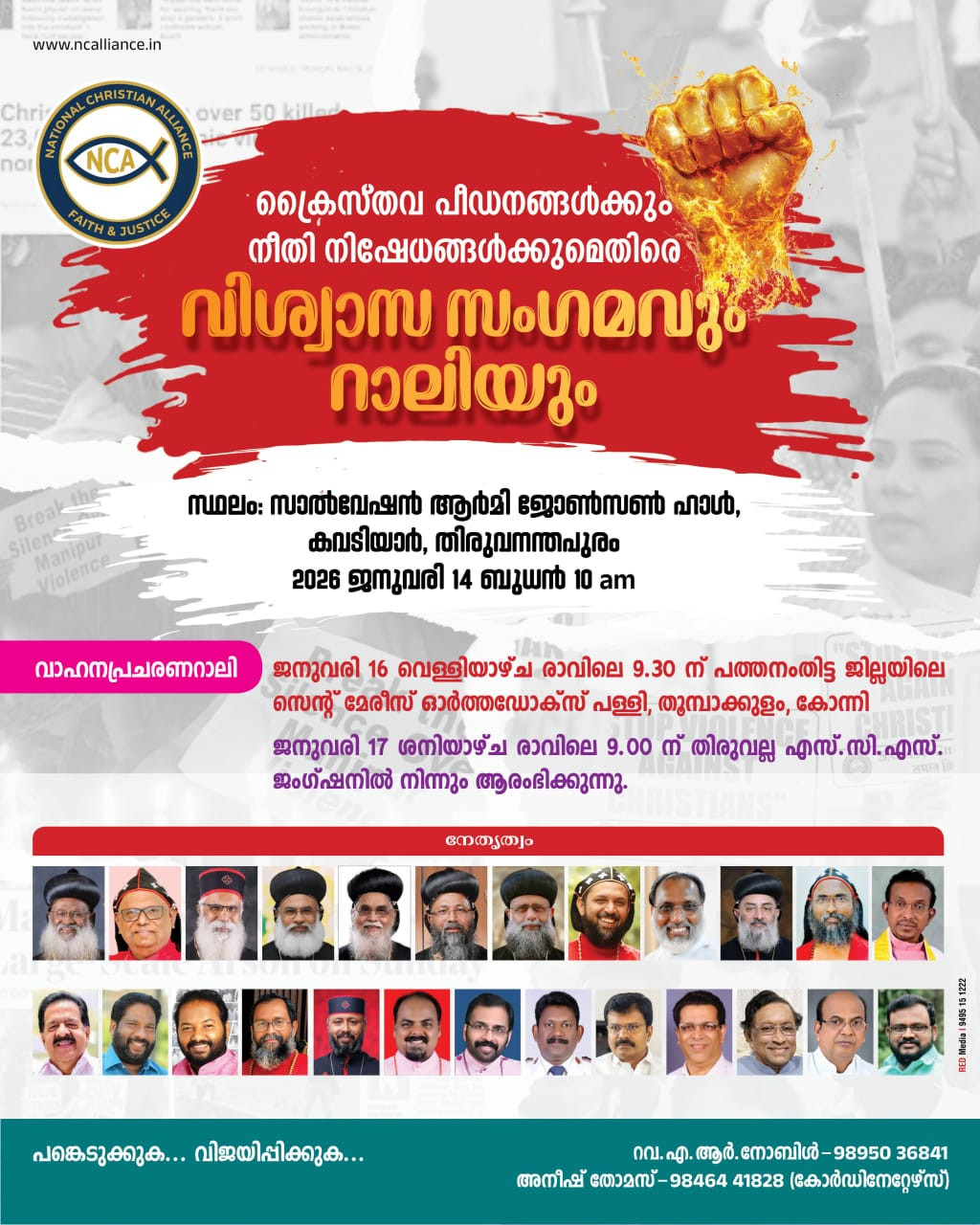ക്രൈസ്തവ പീഡനങ്ങള്ക്കും നീതി നിഷേധത്തിനും എതിരെ വിശ്വാസ സംഗമവും പ്രചരണ റാലിയും