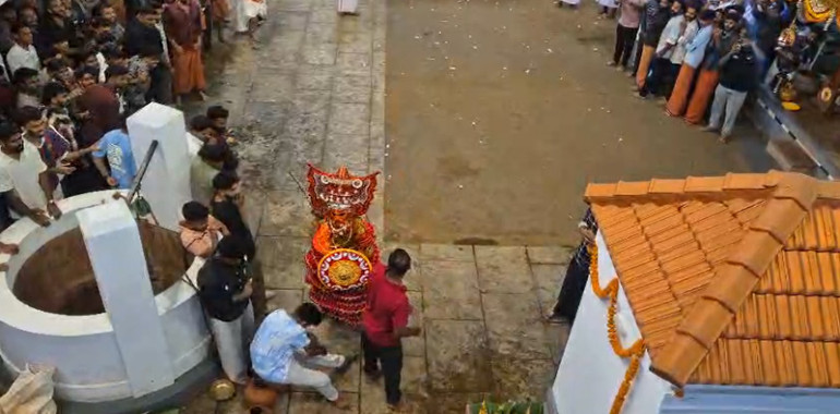 വാളും പരിചയുമേന്തിയ തെയ്യത്തിന്റെ തട്ടേറ്റ് ബോധരഹിതനായി വീണ യുവാവിനെ ആളുകൾ എടുത്തു കൊണ്ട് പോകുന്നത് അടക്കമുള്ള ദൃശ്യങ്ങളാണ് പുറത്ത് വന്നത്.