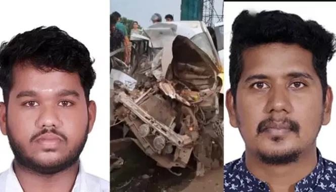 അപകടത്തില് നാല് പേര്ക്ക് പരിക്കേറ്റു. പാലക്കാട് ചിറ്റൂര് ചന്ദനപ്പുറം സ്വദേശി അജിത്ത് (25), പാലക്കാട് പിരായിരി സ്വദേശി വിനീഷ് (35) എന്നിവരാണ് മരിച്ചത്.
