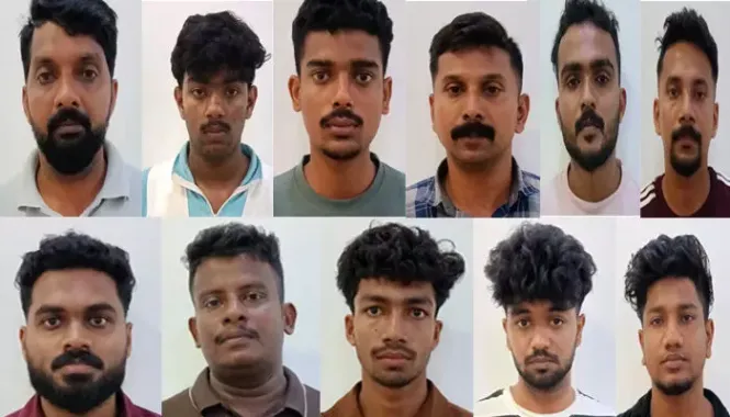 കുട്ടിക്കാനം കെ. എ. പി. അഞ്ചാം ബറ്റാലിയന് പോലീസ് ഓഫീസര് ഷിബിന് നൂറുദ്ദീന് (31), കാഞ്ഞിരപ്പള്ളി ഫയര് സ്റ്റേഷന് ഓഫീസിലെ ഫയര്മാന് ഷാരോണ്(39), അഫ്സല് നാസര് (27), ഷാലു സുധാകരന്(32), ഷിയാസ് (44), ആസിഫ്(16) അരുണ് പി. മോഹന് (23), രാഹുല് (27), ഫാസില് മുഹമ്മദ്(19), അല്റഹാം(18), ശരത്ത് (26) എന്നിവരാണ് കേസില് പ്രതികളായവർ.