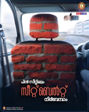 കാറിന്റെ മുൻ സീറ്റിൽ ഇരിക്കുന്നവർക്ക് മാത്രമാണ് സീറ്റ് ബെൽറ്റിന്റെ ആവശ്യകത എന്നൊരു തോന്നൽ ഉണ്ടെങ്കിൽ അത് തെറ്റാണ്. വാഹനത്തിൽ സഞ്ചരിക്കുമ്പോൾ മുന്നിലായാലും പിന്നിലായാലും എല്ലാ യാത്രക്കാരും സീറ്റ്ബെൽറ്റ് ധരിക്കേണ്ടത് നിയമപരമായും സുരക്ഷക്കായും നിർബന്ധമാണ്. യാത്രയുടെ ആരംഭത്തിൽ തന്നെ എല്ലാവരും സീറ്റ്ബെൽറ്റ് ധരിച്ചിരിക്കുന്നുവെന്ന് ഉറപ്പാക്കണമെന്നും കേരള പൊലീസ് ഫേസ്ബുക്കിലൂടെ മുന്നറിയിപ്പ് നൽകുന്നു.